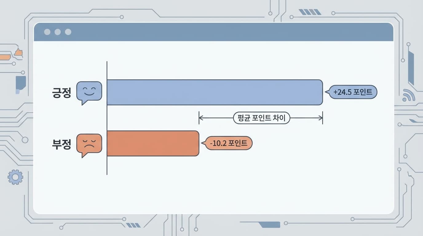 부정적 뉘앙스의 글은 평균 35.6 포인트를 받았습니다.