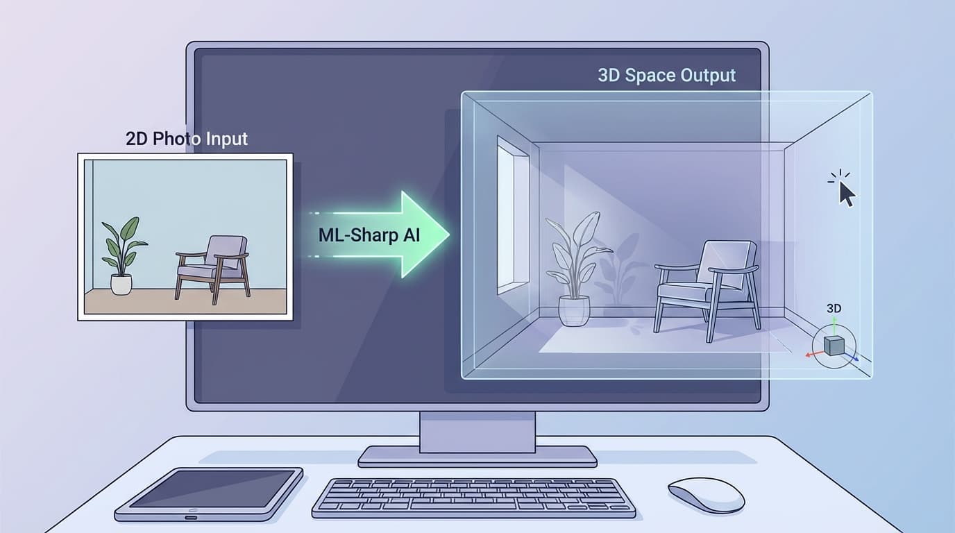 애플(Apple)의 연구 모델인 SHARP를 기반으로 한 'ML-Sharp' 데모입니다.