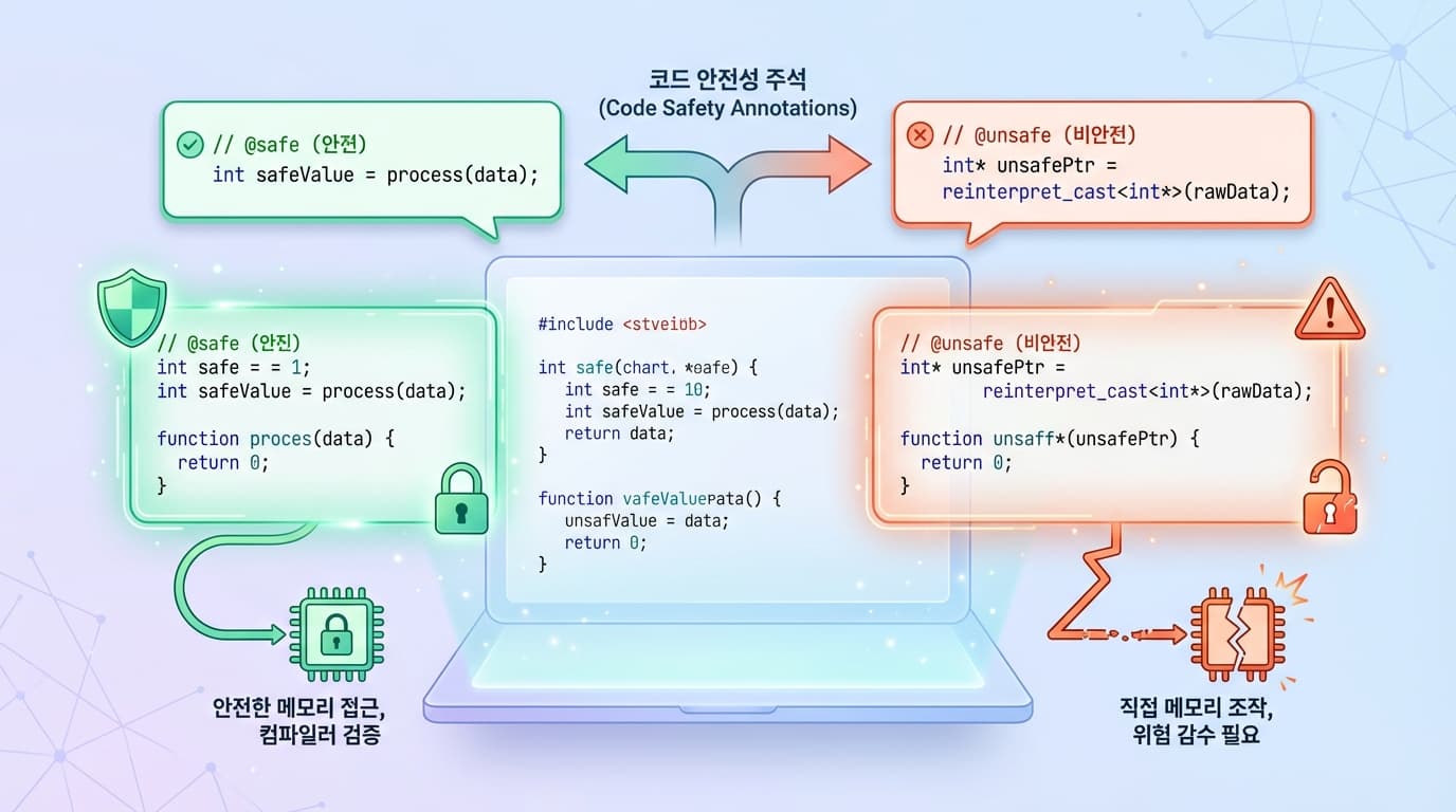 @safe: 안전한 함수임을 명시@unsafe: 위험한 포인터 연산이 포함됨을 명시