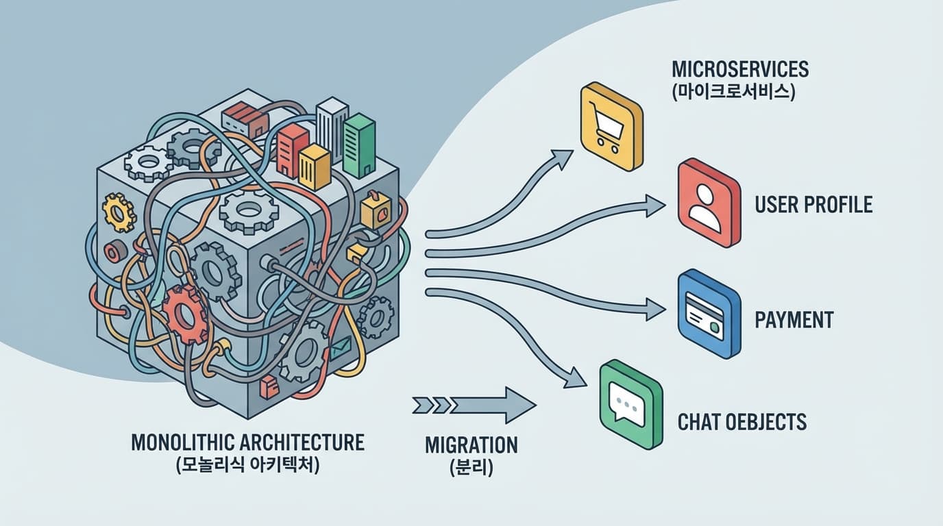 현재 운영 중인 서비스의 트래픽을 감당하면서, 중단 없이 아키텍처를 개선해 나가는 것.