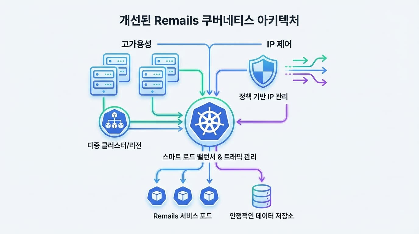 문제는 쿠버네티스 환경에서 특정 IP를 특정 고객의 메일 발송에 할당하는 것이 기술적으로 까다롭다는 점입니다. 쿠버네티스는 기본적으로 노드(Node) 간에 포드(Pod)를 자유롭게 띄우는데, 이메일 발송 시 나가는 아웃바운드 IP는 해당 노드의 네트워크 인터페이스를 따르기 때문입니다. 대량 발송 고객에게 전용 IP를 제공하여 평판을 독립적으로 관리해주려면, 단순히 노드를 늘리는 것으로는 해결이 안 됩니다. 결국 이들은 고가용성을 유지하면서도 발신자별로 아웃바운드 IP를 통제할 수 있도록 쿠버네티스 아키텍처를 리팩터링해야 했습니다.