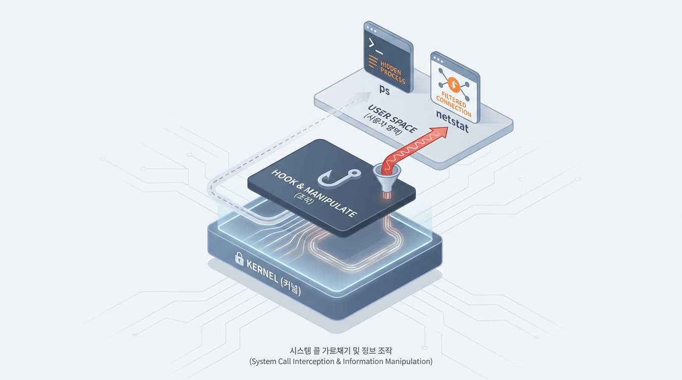 쉽게 말해, 커널이 사용자에게 정보를 보여주는 수도꼭지 자체를 조작하는 겁니다.