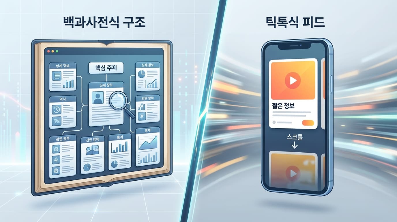 최근 IT 업계의 UI 트렌드는 명확합니다. 사용자의 뇌를 끄게 만드는 것입니다. 틱톡(TikTok)과 릴스(Reels)가 증명했듯, 사용자가 고민할 틈을 주지 않고 다음 콘텐츠를 주입하는 '선형적(Linear) 구조'가 승리 공식처럼 여겨집니다. 클라이언트나 기획자는 습관적으로 "더 심플하게", "사용자가 생각하지 않게"를 요구합니다. 하지만 이것은 위험한 착각입니다. 우리는 사용자를 '바보'로 만들고 있으며, 스스로 탐색할 권리를 박탈하고 있습니다.