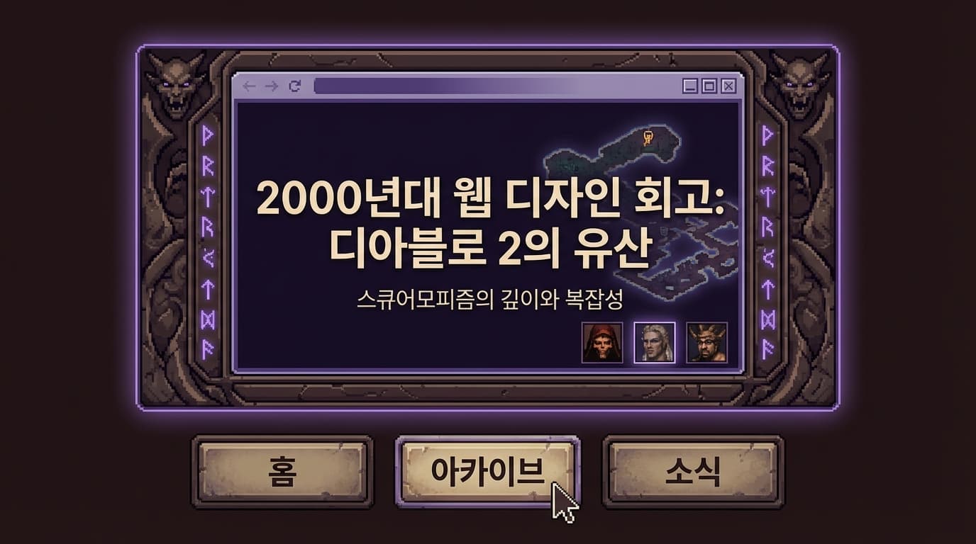 디아블로 2, 스타크래프트, 심즈, 그리고 넥슨의 전성기 시절 웹사이트들. 지금 보면 해상도는 깨지고, 접근성은 엉망이며, 모바일 대응 따위는 안중에도 없는 '총체적 난국'입니다. 하지만 그 난장판 속에는 지금 우리가 잃어버린 무언가가 있었습니다. 바로 '압도적인 몰입감'과 '브랜드 세계관'입니다. 우리는 지금 너무 '깨끗한 UI'라는 안전지대에 숨어있는 건 아닐까요? 이 글은 과거의 향수에 젖자는 이야기가 아닙니다. 천편일률적인 포트폴리오 사이에서 생존하기 위해, 우리가 20년 전의 '카오스'에서 무엇을 훔쳐와야 하는지에 대한 생존 기록입니다.