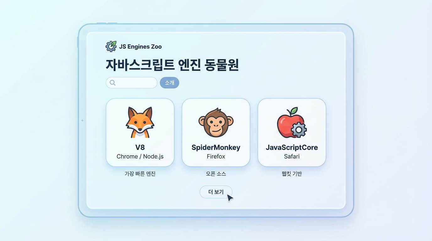 V8(Chrome), JavaScriptCore(Safari), SpiderMonkey(Firefox) 같은 '대장'들은 당연히 있고요.