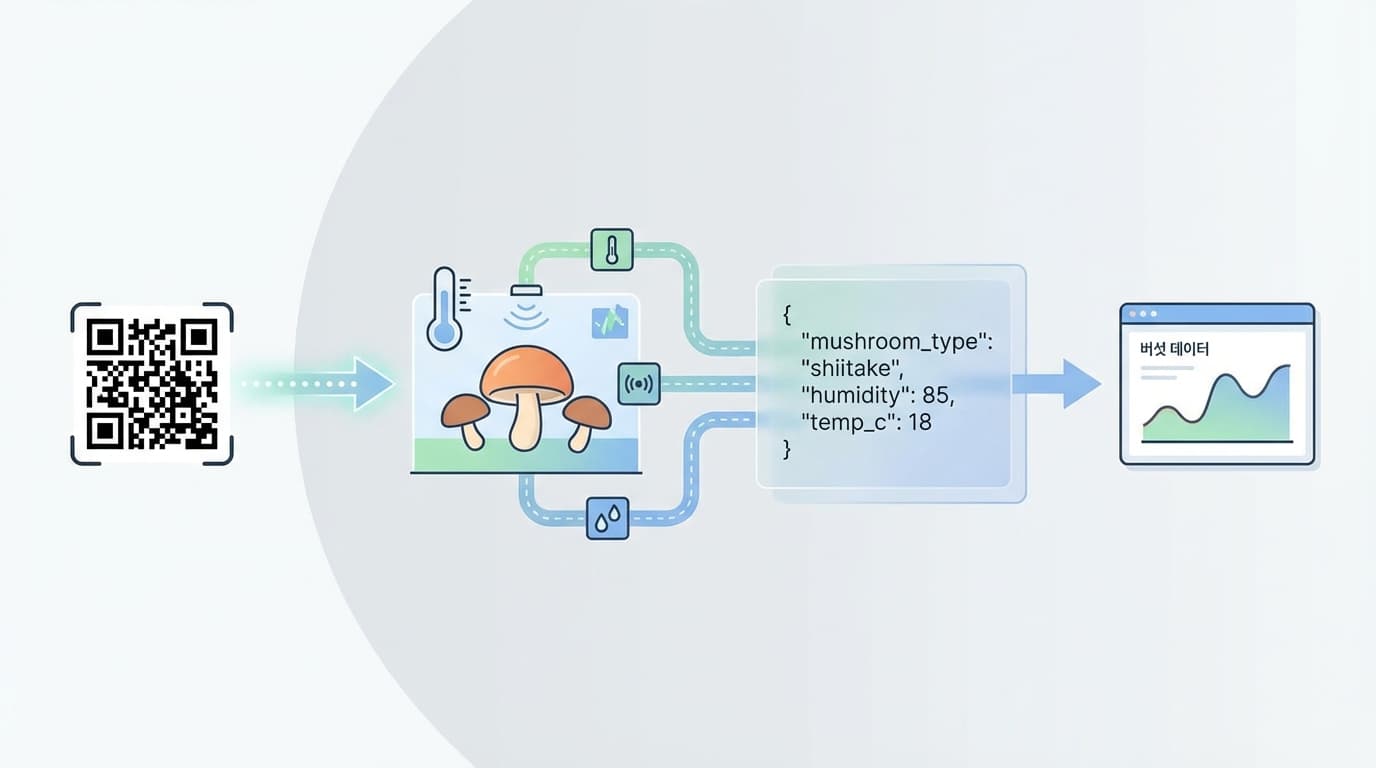 버섯 산업은 전 세계적으로 500억 달러 규모에 달합니다. 그런데 이 거대한 시장이 어떻게 돌아가는지 아십니까? 놀랍게도 대부분 스프레드시트와 손으로 쓴 공책에 의존하고 있습니다. 제가 SI 프로젝트 파견을 다니며 수없이 목격했던, 데이터가 파편화되고 업무 프로세스가 사람의 기억력에 의존하는 '레거시의 지옥'과 똑같습니다. 표준화도 없고, 상호 운용성(Interoperability)은 꿈도 못 꾸며, 농장과 연구소 간에 인사이트를 공유할 방법조차 요원합니다. 이 막막한 상황에서 WOLS는 아주 단순하지만 강력한 해결책을 제시합니다. 바로 재배 표본 데이터를 기계가 읽을 수 있는 QR 코드로 인코딩하는 표준 규격입니다.