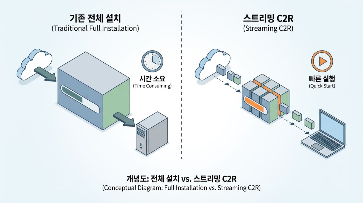 그렇다면 왜 '클릭 투 런'일까요? 주니어 개발자들은 단순히 설치 방식의 차이로만 이해할 수 있겠지만, 여기에는 '가상화'와 '스트리밍' 기술이 녹아 있습니다. C2R은 전체 설치 파일을 멍하니 기다리며 다운로드하는 구시대적 방식이 아닙니다. 필요한 구성 요소를 스트리밍으로 내려받아 즉시 실행 가능하게 만들고, 나머지 데이터는 백그라운드에서 조용히 채워 넣습니다. 무엇보다 샌드박스 환경에서 돌아가기 때문에 기존 설치된 다른 버전의 오피스와 충돌할 확률도 현저히 낮습니다. 제가 폭포수 모델 시절, CD로 오피스를 설치하다가 레지스트리가 꼬여서 포맷을 하던 때와 비교하면 격세지감을 느낍니다. MS는 이제 이 효율적인 C2R 방식 하나로 배포 파이프라인을 통일하겠다는 겁니다. 윈도우 10의 수명이 끝나가고 윈도우 11로 전환되는 시점과 맞물려, 레거시 배포 방식을 정리하는 건 어찌 보면 당연한 '청소' 작업입니다.