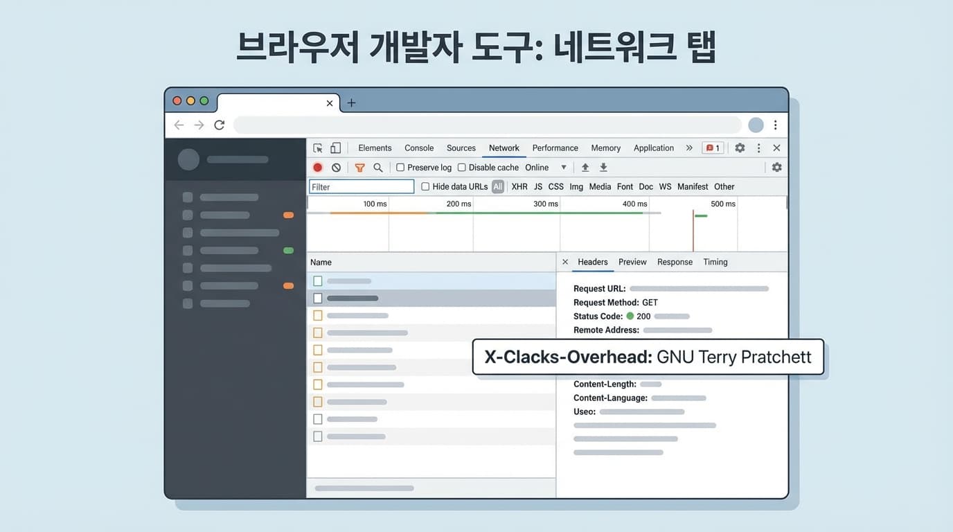 */이게 전부입니다. 이제 제 블로그의 모든 HTML 요청과 정적 자산에는 이 헤더가 붙어서 나갑니다. curl -I 명령어로 제 사이트를 찔러보면, 서버는 묵묵히 "GNU Terry Pratchett"이라고 응답하겠죠. 성능이나 기능에는 아무런 변화가 없습니다. 검색 엔진 최적화(SEO)에 도움이 되는 것도 아니고요. 하지만 누군가 우연히 개발자 도구를 열었을 때 이 헤더를 발견하고 피식 웃거나, 잠시나마 따뜻함을 느낀다면 그것만으로도 충분한 가치가 있다고 생각합니다.
