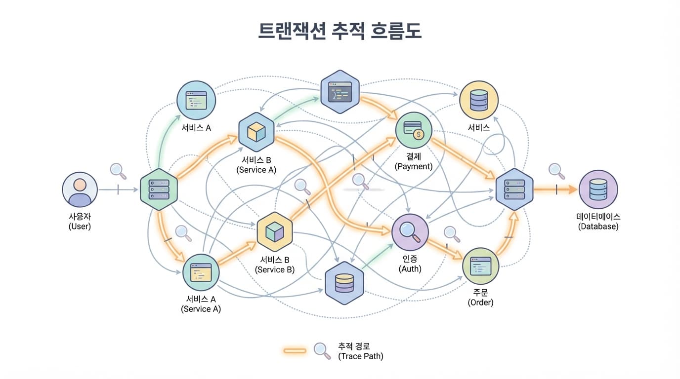 하지만 서비스가 수백 개로 쪼개지니, 요청 하나가 어디서 죽었는지 아무도 모르는 지경이 됐죠.