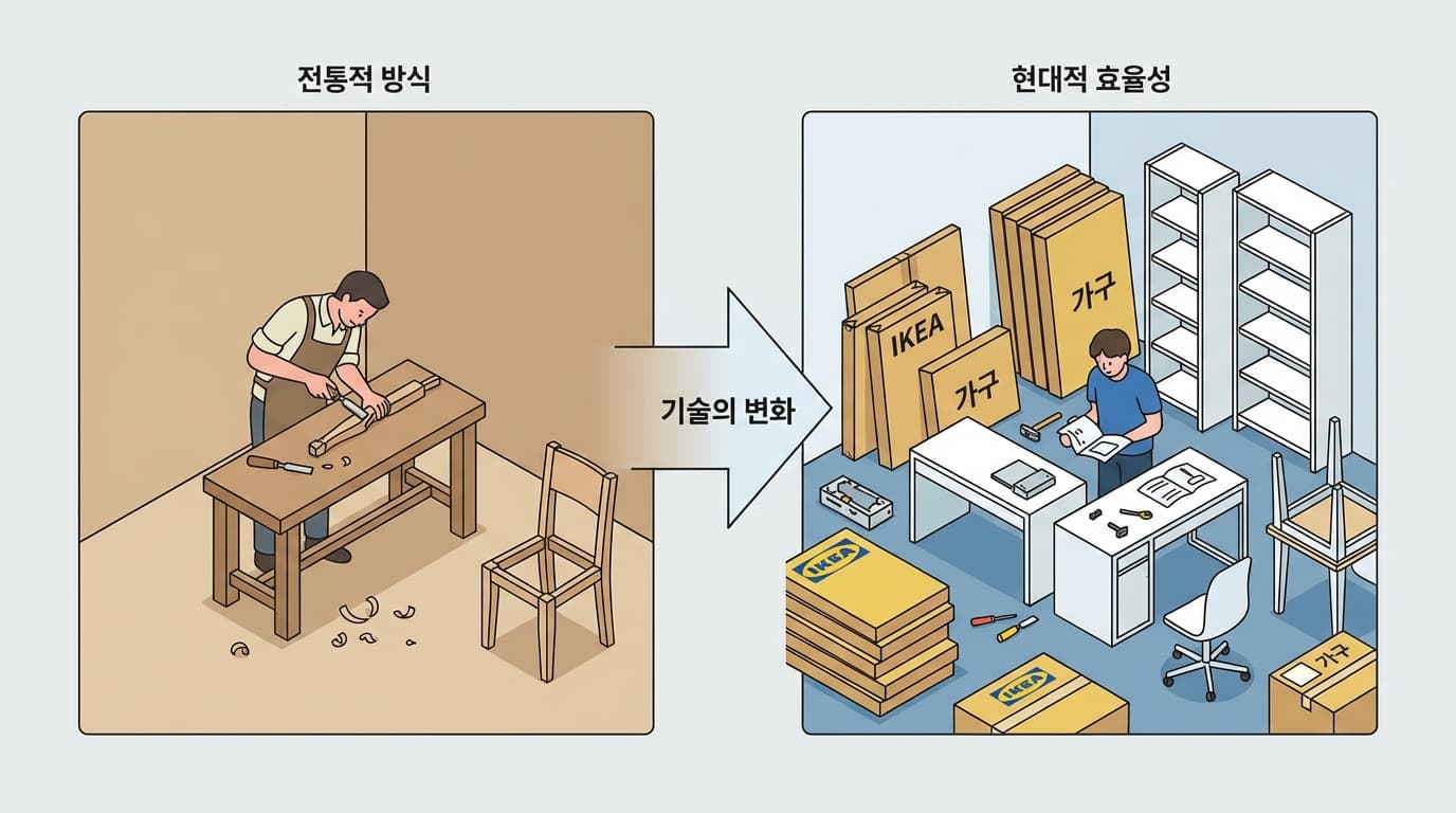 우리는 코드를 짭니다. 마치 가구를 만드는 장인처럼요. 나무를 베고, 다리를 깎고, 못질을 합니다. 그런데 옆 가게는 이케아(IKEA)에서 사 온 반조립 가구를 10분 만에 조립해서 손님을 받습니다.
