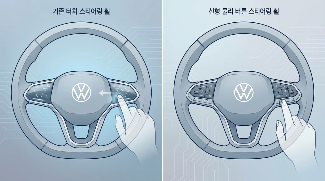 - 전방위적 정책 수정: 이는 단순한 모델 하나의 변경이 아님. 이미 골프(Golf)와 티구안(Tiguan)의 부분 변경 모델에서도 감지된 변화이며, 향후 ID.4 등 전기차 라인업 전체로 확산될 UX 전략의 전면 수정임.